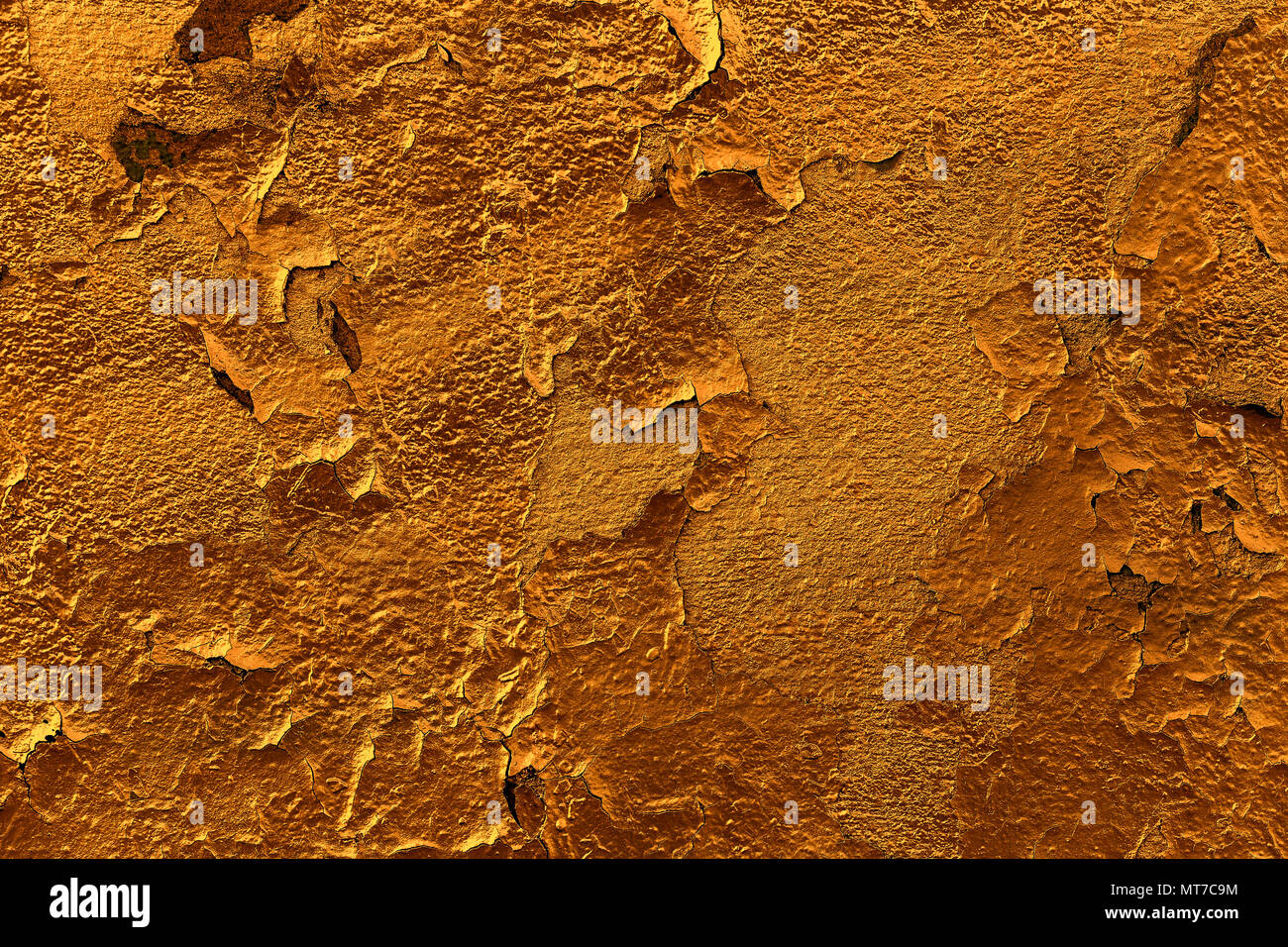 Damaged And Peeling Golden Paint Of An Old Wall Of Abandoned